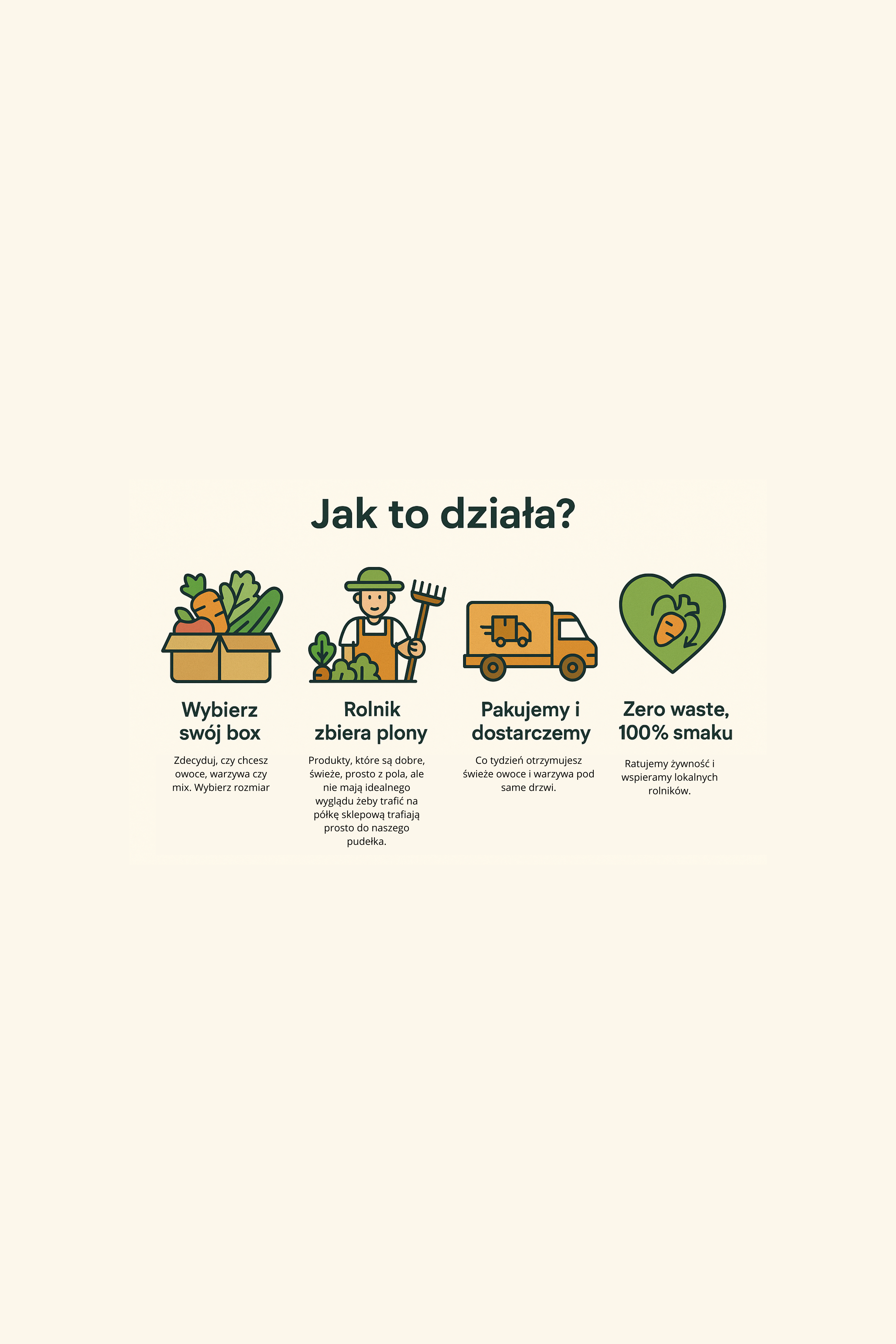W Polsce co roku marnuje się około 5 mln ton żywności, a na świecie aż 1/3 całej produkcji. Najczęściej wyrzucane są owoce i warzywa – nawet 30%, duża część z nich tylko dlatego, że są krzywe, za małe czy mają plamkę. Kupując boxy zero waste dajesz im drugie życie: wspierasz rolników, zmniejszasz emisję CO₂ i oszczędzasz wodę (np. jedno jabłko to aż 70 litrów wody potrzebnej do jego wyprodukowania). To prosty wybór, dzięki któremu pomagasz planecie i jednocześnie masz świeże, zdrowe produkty pod drzwiami.
